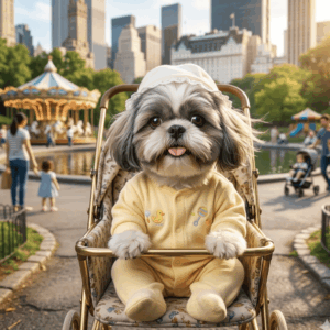 Your Shih Tzu is, after all, a baby! Make them wear a bib and give them a feeding bottle. They will look like just a few months old kid sitting and playing around.