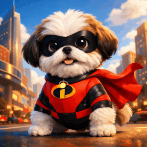 They are the Incredibles. This Shih Tzu dress should be red/ blue and black in color with that black eye patch. After this, all you have to handle is the attention your Shih pup will get from everyone.