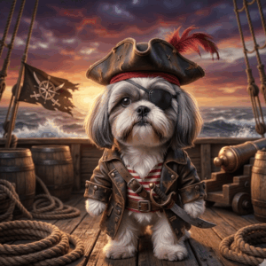 The cool pirate who steals hearts of people. This Shih Tzu costume will be very appropriate for them and you see how cute they will look. That hairstyle is the ultimate nailing point.