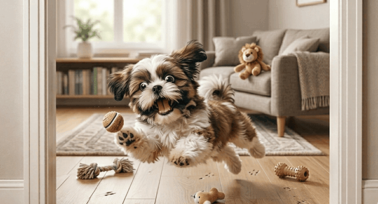 If you are a little concerned with this attitude of Your Shih Tzu pup, don’t be. Cause there is an explanation for this behaviour. Theorists over the years have proposed the Surplus Energy Theory which suggests that the energy built up in our body finds release through aimless exuberant activities of play.