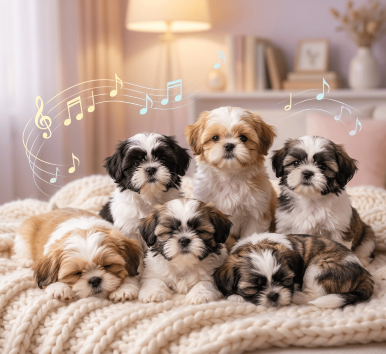 Here in this video, two extremely furry puppies of the Shih Tzu puppies relax to a tune being played in the background.