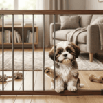 Three Cute Shih Tzu Puppies Relaxing Doorway